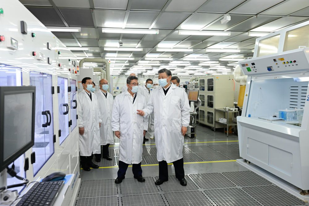 5月11日至12日,中共中央总书记、国家主席、中央军委主席习近平在河北考察,并主持召开深入推进京津冀协同发展座谈会。这是12日上午,习近平在位于石家庄市的中国电科产业基础研究院生产车间考察。新华社记者 申宏 摄