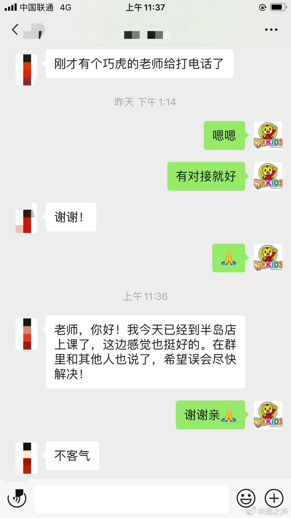 该中心工作人员表示,就目前公司的经营情况,也多次向巧虎kids中国区总代理——上海鲱鱼宝宝教育管理咨询有限公司反映,但并没有得到有效的支持:“我们也把这个情况反馈给总部了,希望总部能给到一定的支持。但是总部跟我们说,如果你们有新的老师入职的话,我们可以提供培训,但是如果没有的话,希望你们能尽力自己去招。”