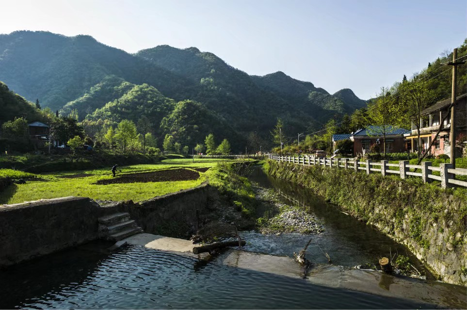 郭峪村境内山峰连绵起伏,与小溪、梯田、竹林、村落构成一幅山水田园美丽画卷。