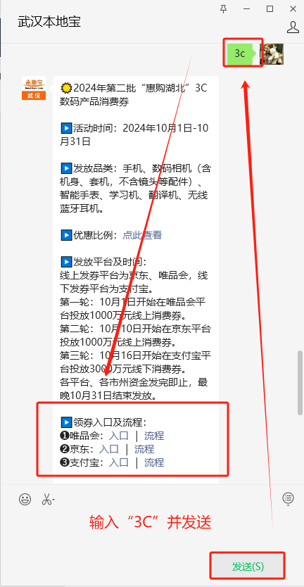 在聊天对话框回复【3C】