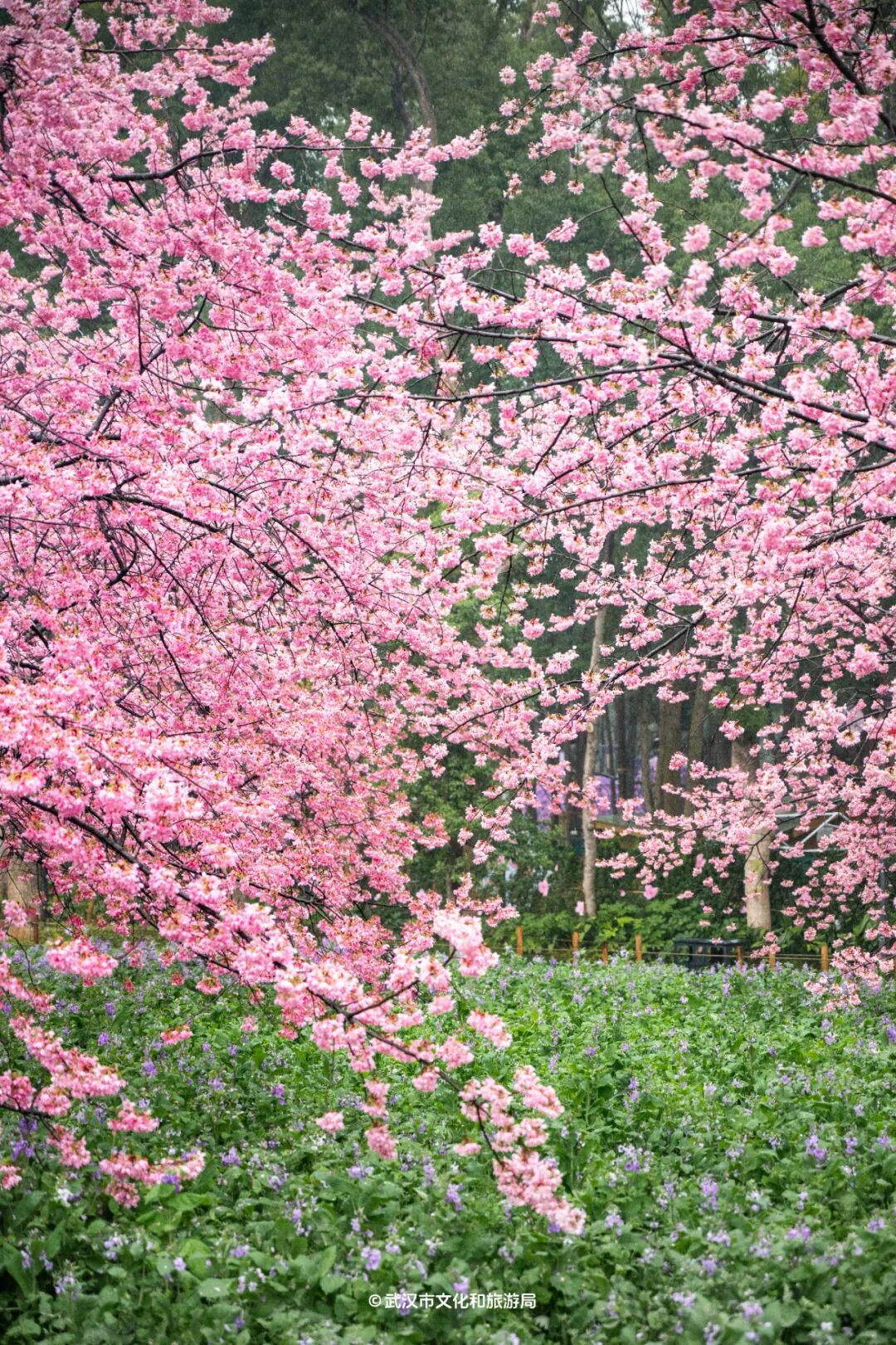 作为每年武汉的赏樱热门,东湖樱花园10000多株、80余种樱花接力盛开30多天,为游客呈现一整个绚烂多彩的春天。
